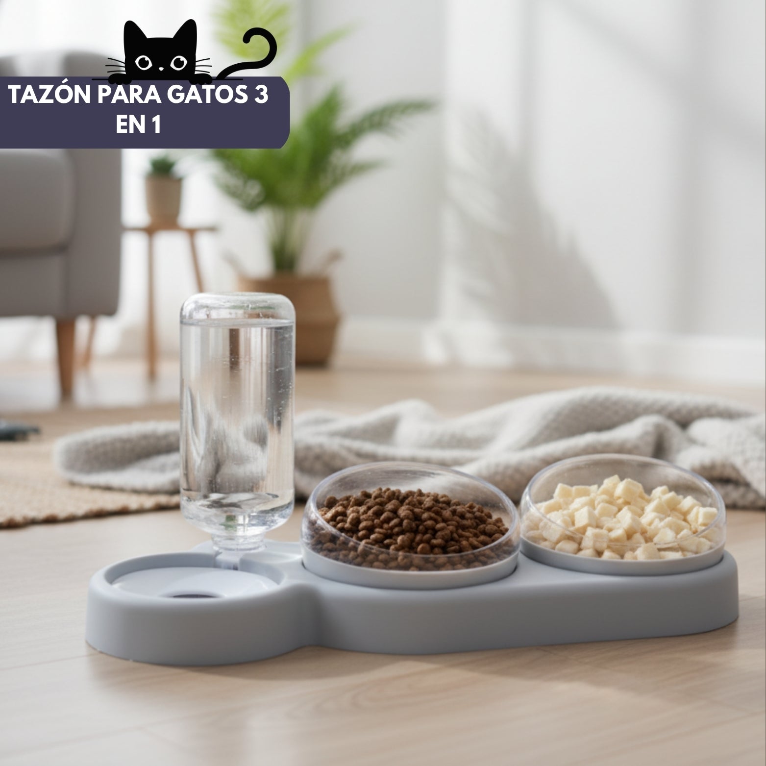 Bebedero y comederos para gatos 3 en 1